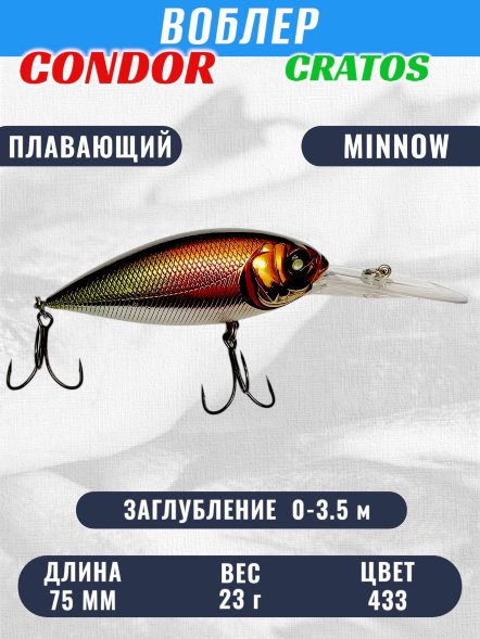 Воблер CONDOR CRATOS  размер 75 мм вес 23,0 гр заглубление 0 - 3,5 м цвет 433
