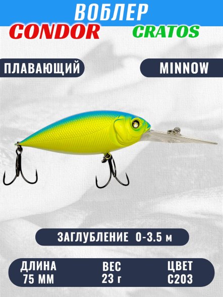 Воблер CONDOR CRATOS  размер 75 мм вес 23,0 гр заглубление 0 - 3,5 м цвет C203